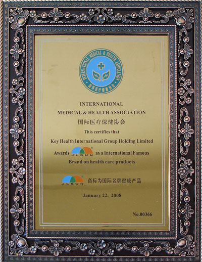 國際醫(yī)療健康協(xié)會授于康益為國際名牌健康產(chǎn)品