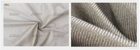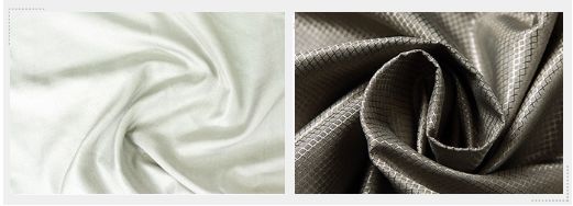 3. 鍍銀纖維面料:通過(guò)在尼龍坯布上鍍銀,所有纖維的表皮層都是的純銀層,導(dǎo)電性能優(yōu)異。再通過(guò)表面處理技術(shù),達(dá)到優(yōu)異的抗氧化,耐水洗和柔軟可貼膚的智能傳導(dǎo)材料的要求,具有持續(xù)穩(wěn)定的防輻射功能。
