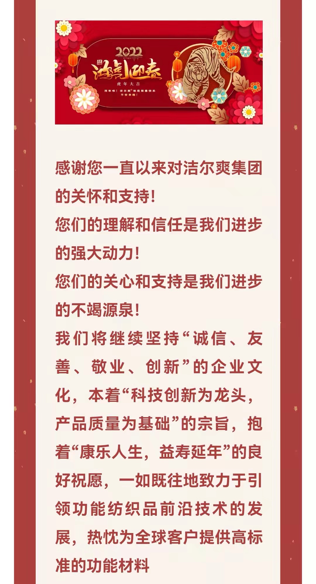 喜迎2022,潔爾爽®祝您春節(jié)快樂,健康幸福!