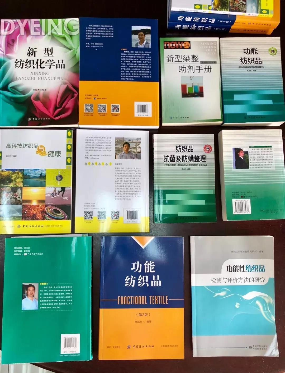 商成杰教授先后編著的《新型染整助劑手冊(cè)》、《功能紡織品》、《織物抗菌和防螨整理》、《高科技紡織品與健康》和《新型紡織化學(xué)品》等多部學(xué)術(shù)著作,為紡織行業(yè)的科技創(chuàng)新提供了必備的理論知識(shí)、技術(shù)資料和創(chuàng)造性的科研思路。